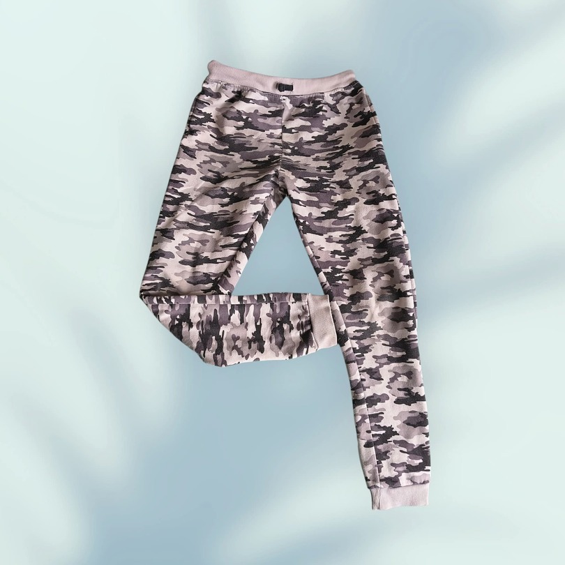 Kolorystyka: Odcienie szarości, beżu i bieli tworzące kamuflażowy wzór.