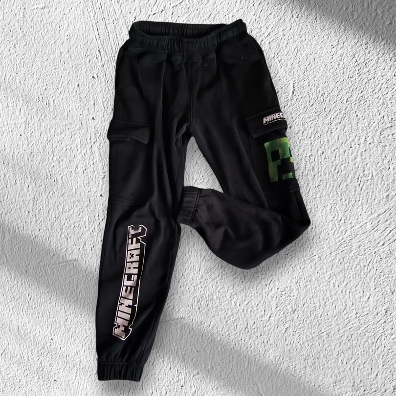 Czarne spodnie dresowe typu jogger cargo z motywem Minecraft,